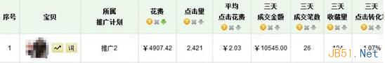 此款寶貝是經過前期測試,點擊率比較高且有收藏的一款;后期與客戶溝通后,對該寶貝嘗試加大力度,測試具體反饋情況;關鍵詞部分以熱搜詞為主,同時配合定向和站外。