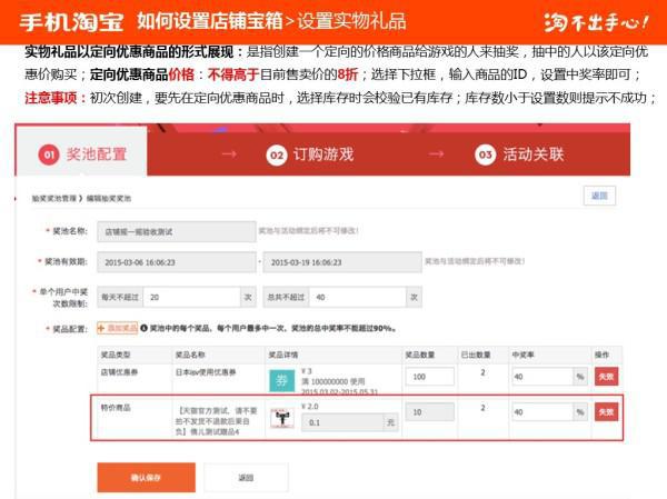 前面介紹了,券、流量包的獎品設置,天貓賣家還有一項特權,就是可以設置實物獎品,這個僅限天貓店鋪,目前C店還不支持。