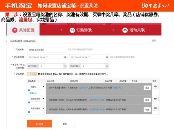 第二步:設置店鋪寶箱要先設置獎池,將獎池與寶箱掛鉤,這樣消費者打開店鋪寶箱,才能參與抽獎。