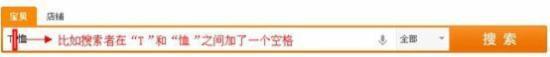 一般搜索者在分詞時會直接以加空格的形式體現,這時候,淘寶的搜索引擎會首先遵從搜索者的意愿,它會認為搜索的人預先做好了分詞,不管分的合理還是不合理,也不管有沒有意義,淘寶都會按照詞組來對待,不會強行的合并到一起。比如我們搜索“T恤”,在這連個字之間加上一個空格,單字“T”和單字“恤”分開后其實沒有意義,但是淘寶的搜索引擎不會管這個,出來的搜索結果中就會出現“T”和“恤”不連在一起的情況,并且當做詞組看待,無序匹配: