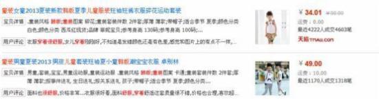 這類關鍵詞,淘寶會認為是一個詞組。如果中間有空格的話,淘寶會直接認定為是詞組(比如上面談到的“三 輪車”的例子);如果沒有空格,淘寶會自己進行分詞。搜索出來的結果,分開的兩個(或者幾個)詞可能連在一起,也可能不連在一起,也可能前后順序不一樣。比如我們搜索“韓版童裝”和“韓版 童裝”: