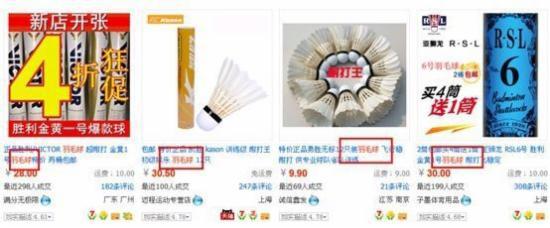 當用戶在搜索框中輸入的關鍵詞在淘寶的詞庫中時,只顯示標題中含有完整單詞(連在一起)的寶貝。比如我們搜索“羽毛球”,這屬于淘寶詞庫中的詞,淘寶的搜索引擎認為他是一個單詞,搜索結果中將會只顯示標題中包含完整的“羽毛球”這個詞的寶貝:
