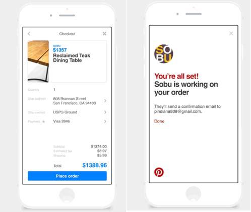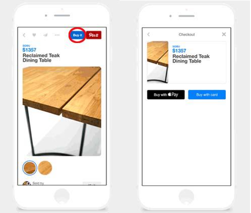 直接實現轉化,最好還是購買行為轉化,這無不是社交網站的追求。Pinterest就通過給那些擁有更多信息的pin(rich pin),添加一個buy it按鈕,你可以查看價格、選擇顏色、然后用apple pay直接實現內部購買。這些就是他們最新推出的buyable pin。