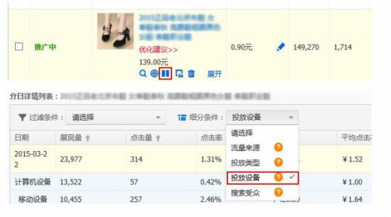 打開推廣中寶貝——關鍵詞——按下一圖點擊——選擇投放設備