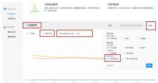 生意參謀——經營分析——交易概況(交易分析)——交易趨勢——同行對比,選擇一般或優秀,同時勾選指標,支付轉化率,就可以查看每天的轉化率,自己根據數據估算自己要達到的轉化率。