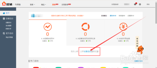 10、找到“店鋪紅包”,直接點擊“創建活動”。