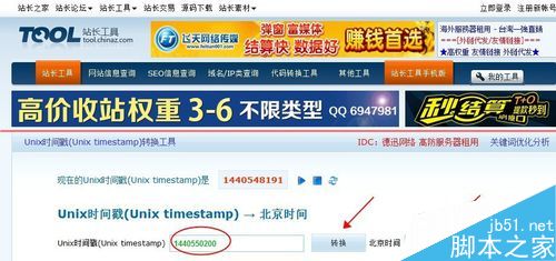 5、把”1440550200“這串?dāng)?shù)字粘貼到unix時(shí)間戳轉(zhuǎn)換工具里面,點(diǎn)擊轉(zhuǎn)換,就可以看到這串?dāng)?shù)字所對(duì)應(yīng)的真實(shí)時(shí)間了