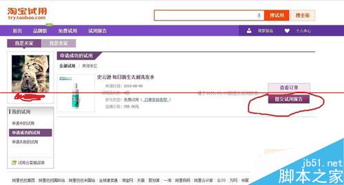 4、在左邊選擇“申請成功的試用”,在需要填寫試用報告的試用品后面點擊“提交試用報告”。