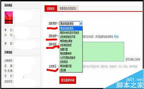 6、收到貨物后申請退款——提交退款申請。同樣和未收到退貨的退貨的步驟一樣,退貨首先需要填寫退貨說明、退貨原因,金額等相關信息。此處退款的金額等不能隨意填寫,要不大于當初買貨的金額,否則不能正常退款。
