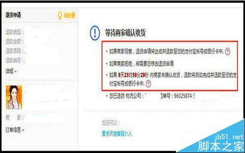 3、完成設置了。完成設置之后,會出現一個“等待商家處理退貨申請”的提示窗口,在這個窗口中會顯示退貨完成需要的時限等信息,可以及時查看相關信息。
