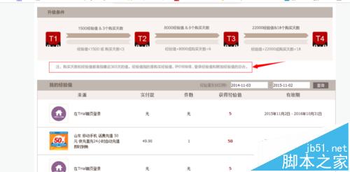 2、天貓的會(huì)員等級(jí)一共有4級(jí),T1~T4,天貓的經(jīng)驗(yàn)值有效期為1年。