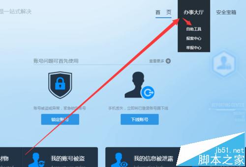 3、完成了登錄后,用戶在阿里110的首界面,點擊右上角的【辦事大廳】——【自助工具】選項。、