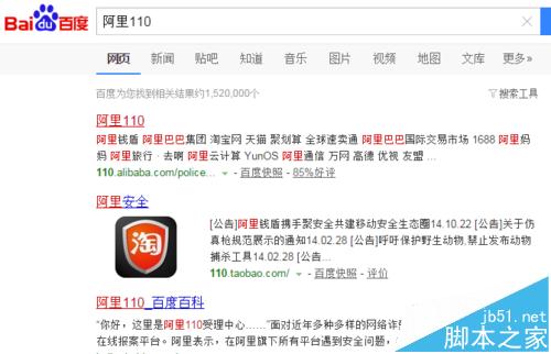 1、首先,這個給自己的淘寶賬號進行安全評級的操作需要用到阿里110,我們就搜索和打開阿里110的界面。