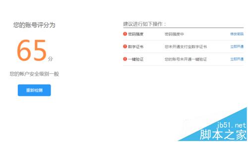 5、點擊之后,阿里110就會對用戶的淘寶賬號安全性進行一個系統的檢測和對于的評分分值。
