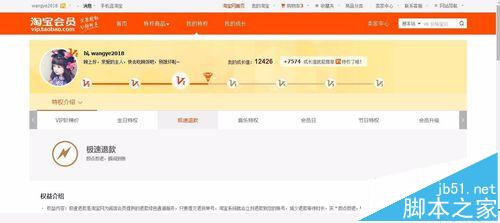 4、打開之后,你可以看到淘寶會根據你的淘寶買家等級給予你不同的額度的極速退款,如下圖: