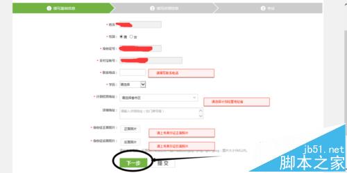 6、認(rèn)真填寫完成檢查無誤后。點(diǎn)擊頁面下面的下一步繼續(xù)填寫詳細(xì)資料