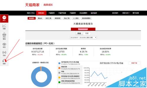 2、進入“商家成長”界面后,點擊進入左側(cè)導(dǎo)航欄“客服”一項。