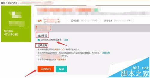 4、進入報名頁面。在這里可以查看報名資質和活動規則。如滿足條件,可以點擊立即報名。