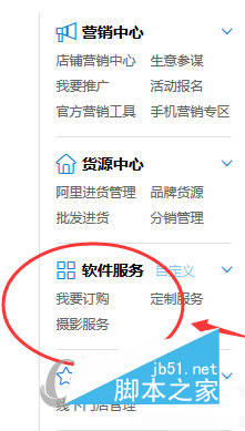 在左側的欄目里面尋找到軟件服務,在交易管理、物流管理、營銷中心、貨源中心的下面。