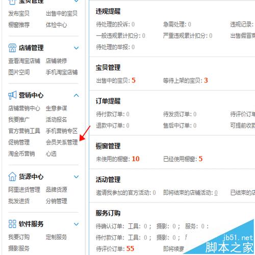 5、好了,這樣我們就已經訂購好免費的打折軟件了,下面的步驟就是怎么設置打折工具了。首先進入【賣家中心】,在左邊找到【營銷中心】,點擊【會員關系管理】。