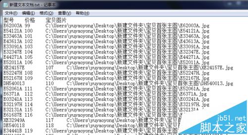 6、新建一個記事本文件,把上面價格表的前三列復(fù)制過來并保存。
