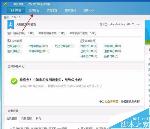 2、來到淘寶助理首頁,點擊“寶貝管理"