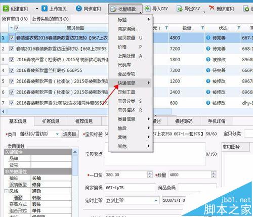 5、點擊批量編輯--快遞信息,如圖所示