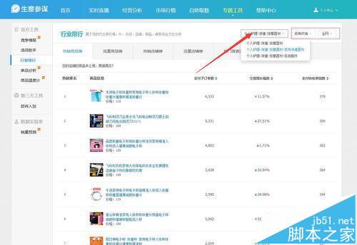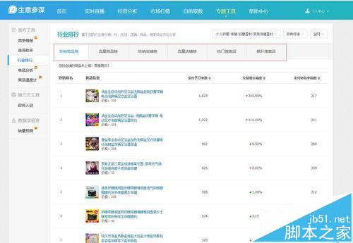 3、在左側官方工具下面找到行業排行工具,點擊進去。