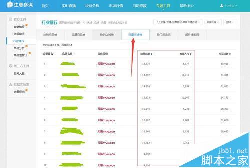 7、選擇流量店鋪榜,可以看到行業前100店鋪的流量情況,這個數據就有用了,可以看來自己店鋪與同行的差距。