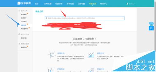 4、點擊單品分析,把自己要查詢的寶貝標題復制,或者直接把寶貝諒解填寫到紅色箭頭位置