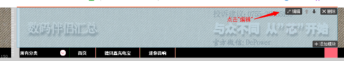 2、打開(kāi)淘寶裝修頁(yè)面,鼠標(biāo)放到店招地方。點(diǎn)擊編輯彈出