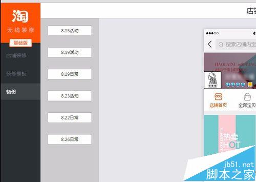 3、備份完后,你就可以進行裝修了,當然你裝修好了也注意要備份哦,要不然恢復裝修之前的頁面,你的裝修不就白費了嗎!?所以要注意合理的進行備份和還原,這樣可以使得你在接下來的裝修中更加方便和快捷。