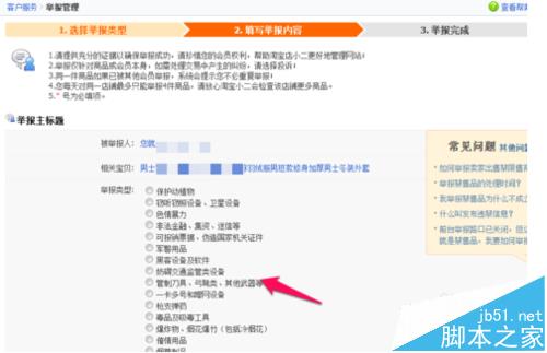 4、然后在這里進(jìn)行選擇舉報的類型。
