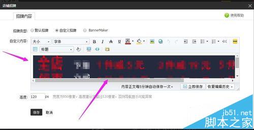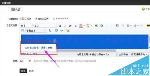 8、當前頁面跳轉回上面第3步的“店招內容”這里,點下面的“保存”,表示把剛才的操作保存。
