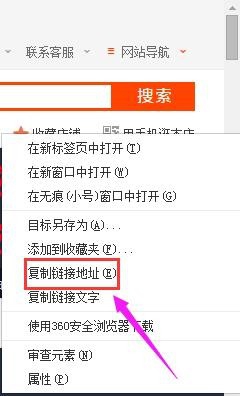 6、頁面彈出菜單,點“復制鏈接地址”。收藏店鋪的鏈接即復制。