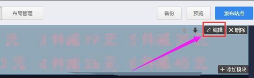 2、進入“店鋪裝修”頁面,光標放在店招模塊上,模塊右側即顯出功能按鈕,點“編輯”按鈕。