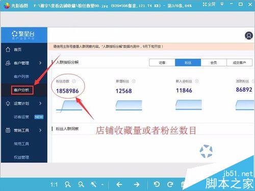 3、進入“聚星臺”,原來的會員關系管理現在更名為“聚星臺”,點擊“客戶分析”,然后就可以查看你店鋪的收藏量或者是粉絲量了。