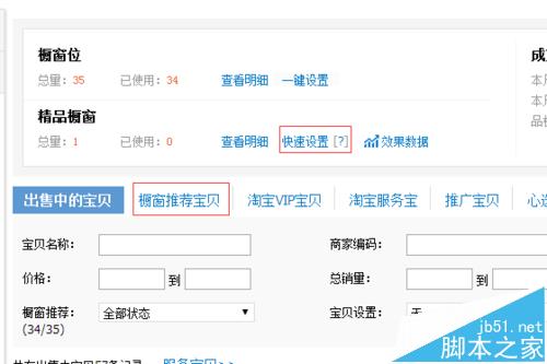 3、接著我們選擇“快速設(shè)置”或者“櫥窗推薦寶貝”都可以,進入櫥窗推薦