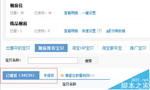 4、在這里找到自己需要櫥窗推薦的寶貝,這里分為已推薦和未推薦兩個狀態(tài),需要注意的是,如果要進行精品櫥窗推薦,首先要將寶貝設(shè)為櫥窗推薦!