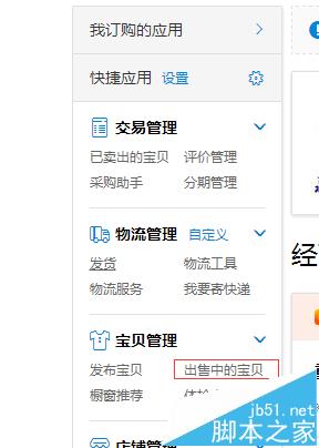 1、進入淘寶網(wǎng),登錄自己的帳號,在“賣家中心”的左側(cè)導(dǎo)航欄中,找到“出售中的寶貝”,點擊并進入!