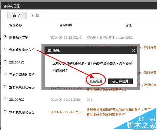 使用了裝修模板之后,日常的模板備份是很重要的一件事情。經(jīng)常備份,養(yǎng)成好習(xí)慣,日后如果編輯出錯(cuò),就可以隨時(shí)去進(jìn)行恢復(fù),這樣就不用擔(dān)心編輯出錯(cuò)。