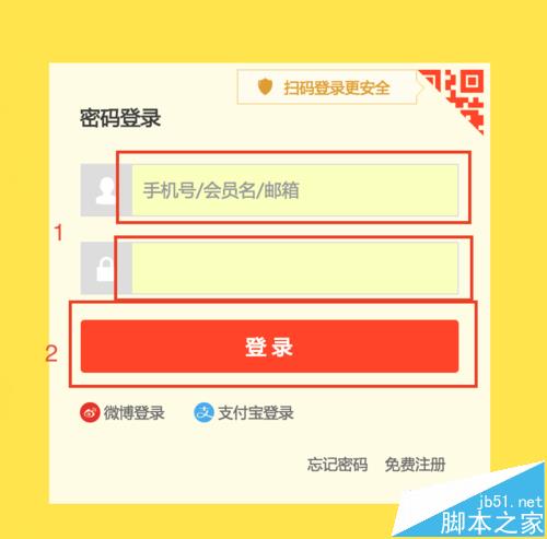 2、買家必須是登錄狀態(tài),因此必須登錄。輸入正確的賬戶密碼驗證碼登錄,或者手機掃碼。如下圖紅框內(nèi)。