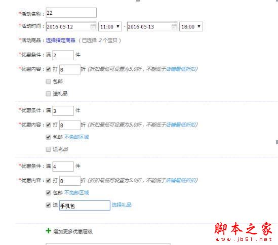 如上圖設置好,點擊保存就可以了,我們可以設置普通優惠,也可以設置多層級優惠,具體的采取哪種形式的優惠方式,結合店鋪的實際情況和店鋪的活動力度去設置就ok了