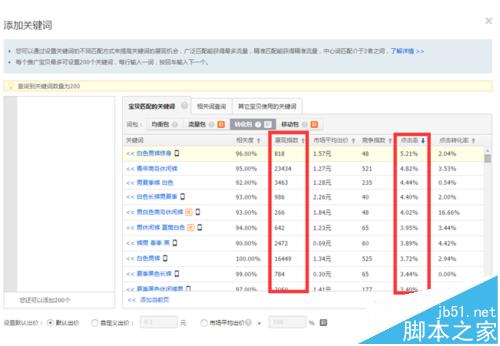 3、選完可能會(huì)發(fā)現(xiàn)沒(méi)幾個(gè)關(guān)鍵詞啊,怎么辦,加進(jìn)去之后在點(diǎn)開(kāi),按這個(gè)步驟再來(lái)一次,只要不是特殊類目,一般推薦都會(huì)給填滿這200個(gè)關(guān)鍵詞,你加出去一部分,他就會(huì)在出一部分填滿,這樣選兩遍就差不多了。而且本身前期加詞現(xiàn)在也不在多20-40之間就可以了。轉(zhuǎn)化的詞沒(méi)有了,那就按點(diǎn)擊率排序,選點(diǎn)擊率好的。同樣也要有一定展現(xiàn)能力的關(guān)鍵詞。基本上開(kāi)始的選詞就結(jié)束了,在要做的就是“點(diǎn)擊率”