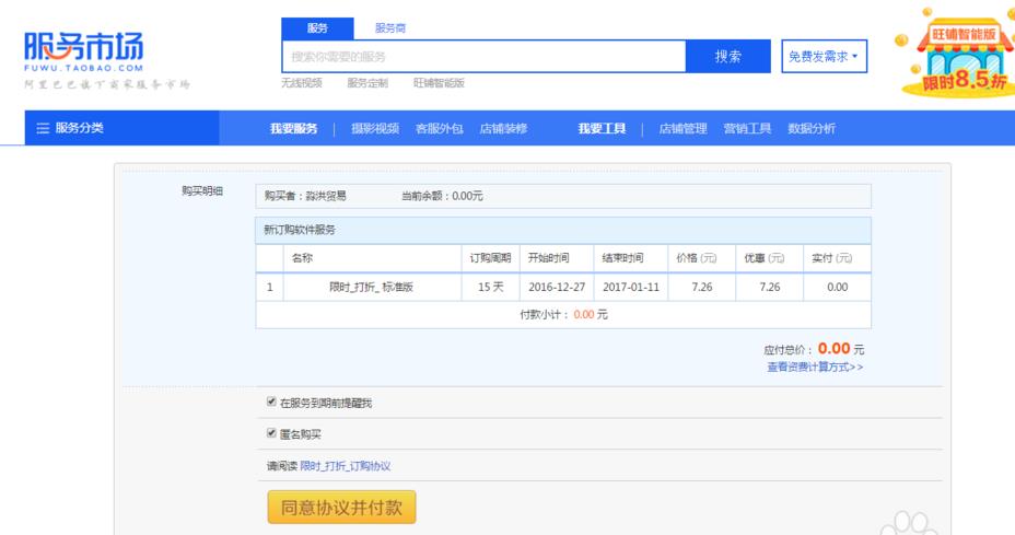 2、來到了服務市場,然后搜索一下“打折”,這樣就會列出所有的提供打折服務的服務商