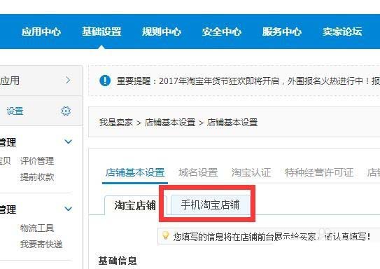 3、點開后這里面有個【店鋪設置【,也有一個【手機店鋪設置】,點擊選擇【手機店鋪設置】。