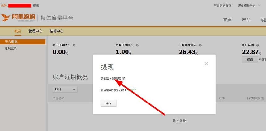 7、提現成功。