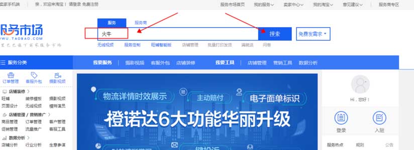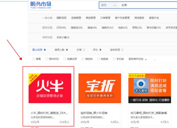 1、首先需要去淘寶服務市場訂購軟件,如果已經訂購了火牛的朋友就不要啦~如果沒有訂購過打折軟件的按照下面的截圖流程去訂購就可以啦~通過淘寶賣家服務市場去搜索訂購軟件,完成準備工作~