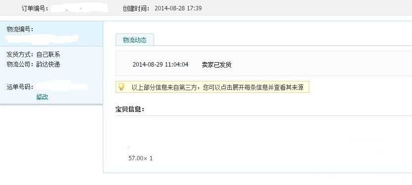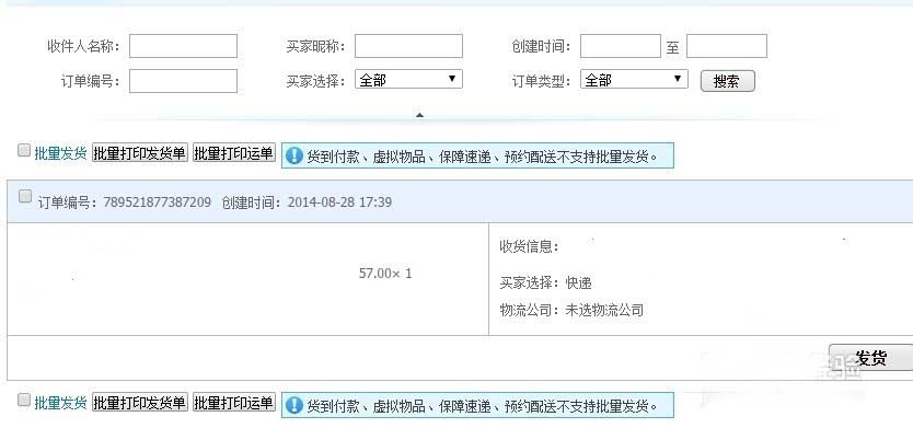 6、快遞單號信息一般24小時內是可以修改的,需要修改的話進入賣家中心-物流管理-發貨-已發貨的訂單-物流服務選擇之前發貨時選擇的服務類型-搜索。獲得剛才發貨的信息-物流訂單詳情