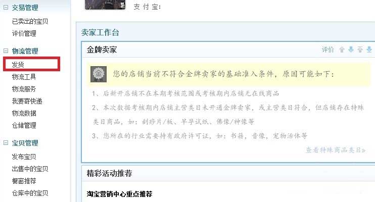 2、將條形碼下的快遞單號記錄下來,進入賣家中心-物流管理-發貨